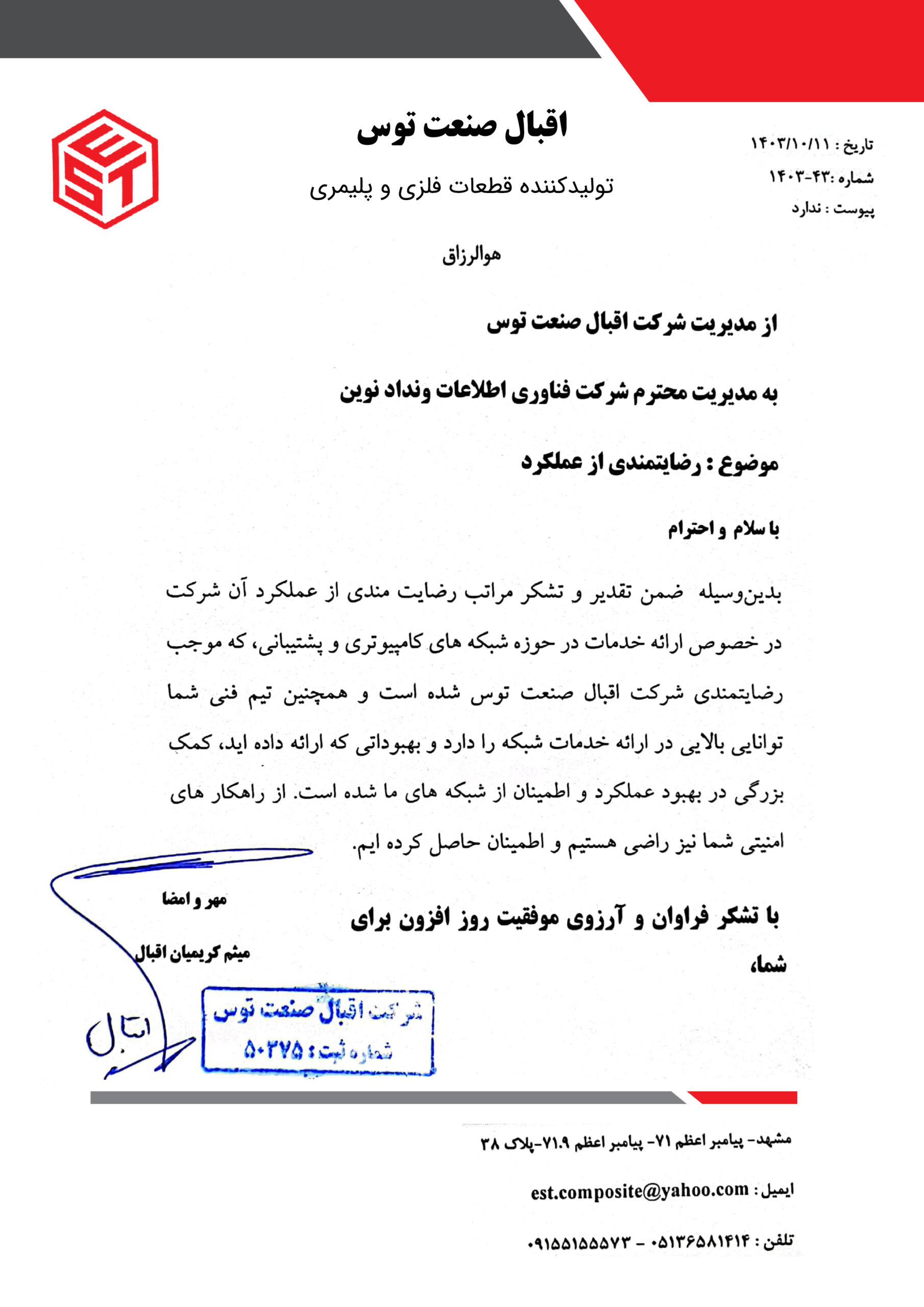 با تکیه بر دانش، تجربه و تعهد به کیفیت، شرکت ونداد نوین به دنبال ایجاد جایگاهی معتبر و قابلاعتماد در میان پیشگامان خدمات شبکههای کامپیوتری است. ما باور داریم که ارائه خدماتی متمایز و کارآمد، پلی برای موفقیت مشتریان و ماندگاری نام ونداد نوین در این صنعت خواهد بود.